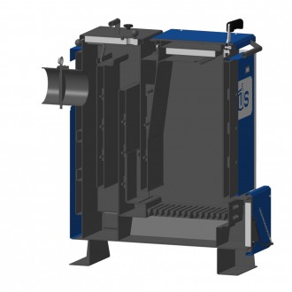 Diagrama schematică a arderii combustibilului în aceste cazane NEUS Mine arată astfel. Combustibilul lemnos este introdus în camera de încărcare pe grătare din fontă. De ce lemn? Cărbunele este, de asemenea, posibil, dar cărbunele în sine este un combustibil bogat în calorii în care aproape nu există substanțe volatile necesare pentru formarea procesului de piroliză, astfel încât cărbunele poate fi folosit ca aditivi porționați turnând combustibil lemnos pentru a crește durata procesului de ardere. . Când se utilizează lemn umed, la arderea cazanului, componenta de piroliză a lemnului de foc nu este eliberată, eficiența scade și toate avantajele cazanului de mină se pierd și obținem un cazan tradițional cu ardere de jos cu o eficiență de 60-65 %. Prin urmare, ca recomandare, mai întâi așezați lemn de foc uscat pe grătar și așezați lemnul umed pe straturile superioare.