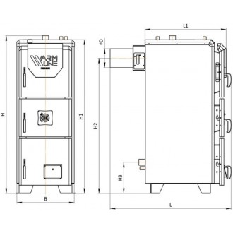 Cazan pe combustibil solid Warmline Premium 42 kW Cazanul cu combustibil solid Warmline Premium este fabricat din oțel pentru cazane de înaltă calitate, folosind aparate moderne de sudură semiautomate și dispozitive precise de îndoit. Centrala are o putere de 42 kW, ceea ce permite încălzirea unei încăperi de până la 420 m². Cazanul are o eficiență ridicată – până la 86%, care se realizează datorită eliminării mari de căldură a gazelor de ardere. Ca combustibil pot fi folosiți lemnul, brichetele, peleții (la instalarea unui arzător de peleți) și cărbunele (folosind grătare din fontă). Durata de ardere a cazanului pe o singură filă este de 6-12 ore.De asemenea, este posibilă instalarea automatizării pentru o funcționare mai eficientă a cazanului și economia de combustibil.