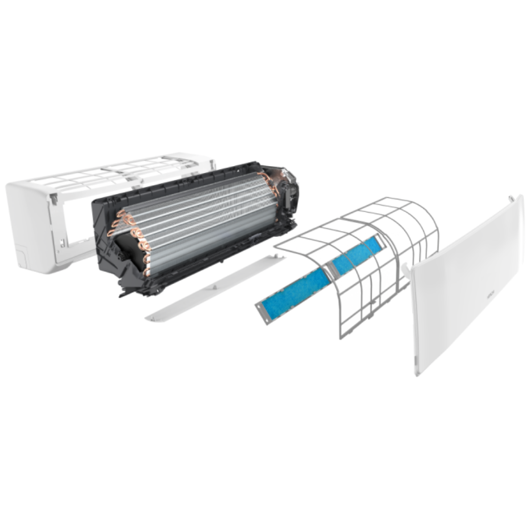 - Senzor termic intelligent Senzorul termic inteligent detectează temperatura curentă a camerei și distribuie aerul uniform în întreaga cameră înainte de a trece la un circuit de flux de aer care direcționează aerul cald sau rece către zonele care au nevoie de el.
