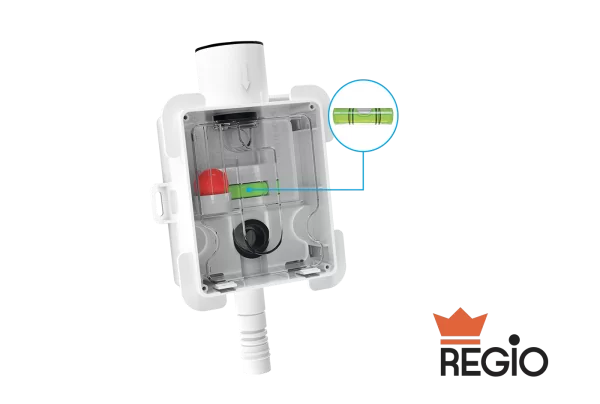 Pentru a facilita instalarea, cutia de instalare este echipată cu o nivelă cu bulă de aer încorporată.