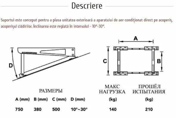 Destinație:Suport pentru unitatea exterioară a climatizatorului